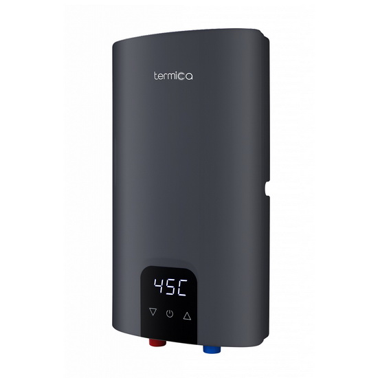 Электрический проточный водонагреватель Termica FORZA 08 вертикальный. Водонагреватели Termica FORZA созданы для надежного и эффективного обеспечения горячей водой как в бытовых, так и в коммерческих условиях. Устройство идеально подходит для решения санитарно-гигиенических задач в различных сферах применения. Ключевой особенностью модели является инновационная система «сухого нагрева», где нагревательные элементы изолированы от прямого контакта с водой. Эта технология полностью исключает образование накипи, значительно увеличивая срок службы оборудования. Интеллектуальная система управления автоматически подбирает оптимальную мощность нагрева в зависимости от расхода воды.