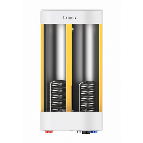 Косвенный бойлер Termica AMET 120 SX настенный. Бойлеры Termica AMET SX созданы для эффективного приготовления горячей воды с использованием энергии отопительного котла. Основной резервуар изготовлен из нержавеющей стали AISI 304, что обеспечивает надежную защиту от коррозии. Два спиральных теплообменника из высоколегированной стали AISI 316L с увеличенной площадью поверхности гарантируют быстрый и равномерный нагрев всего объема воды. Компактный плоский корпус позволяет удобно разместить водонагреватель даже в ограниченном пространстве. Уникальная особенность модели AMET SX – возможность как вертикального, так и горизонтального монтажа.