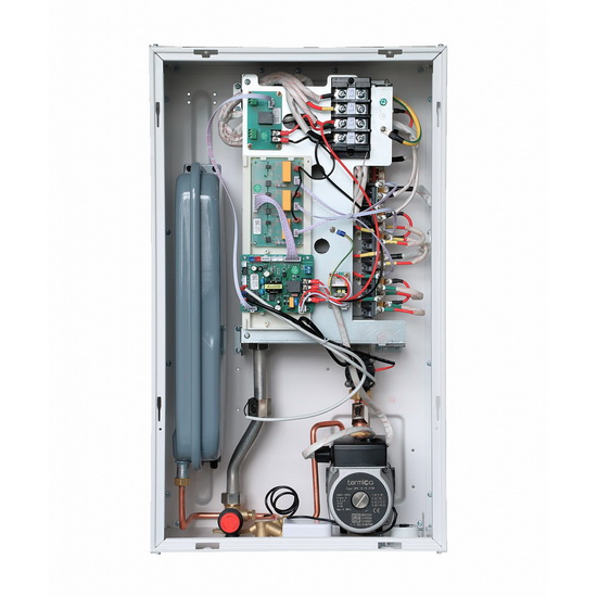 Электрический котёл Termica ELECTRA 21 WiFi управление. Настенный электрический одноконтурный котел Termica ELECTRA нового поколения оснащен усовершенствованным теплообменником с увеличенным проходным сечением, что снижает гидравлическое сопротивление и минимизирует риск аварийных остановок из-за недостаточного протока теплоносителя. Нагревательные элементы не контактируют напрямую с водой, что исключает образование накипи и продлевает срок службы оборудования. Wi-Fi-модуль устанавливается на заводе, позволяя сразу подключить котёл к системе удалённого контроля через смартфон. Котел оборудован расширительным баком.